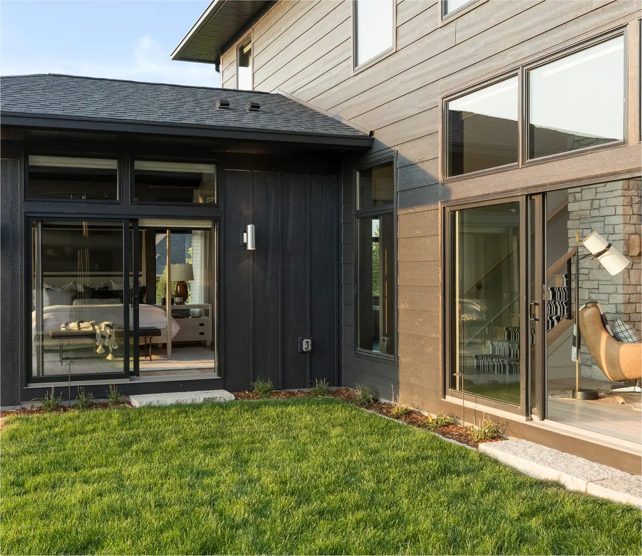 Contemporary design with clean lines and expansive glass area that complements Des Moines' mix of Prairie Style, Craftsman, and modern home architecture.
